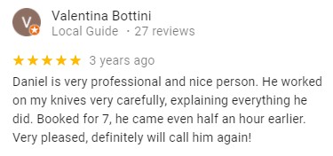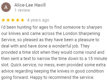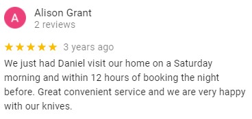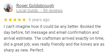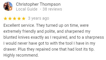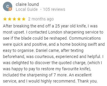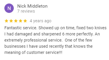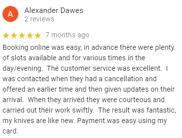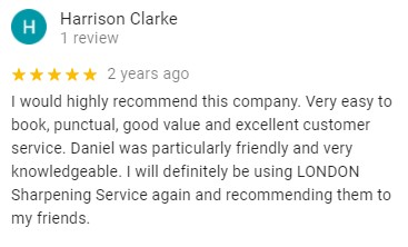 See What Our Customers are Saying … OVER 780/5 STARS REVIEWS BEST AND MOST RATED SHARPENING SERVICE IN LONDON HUNDREDS MORE REVIEWS ON OUR GOOGLE PAGE Click Here to Make a Booking